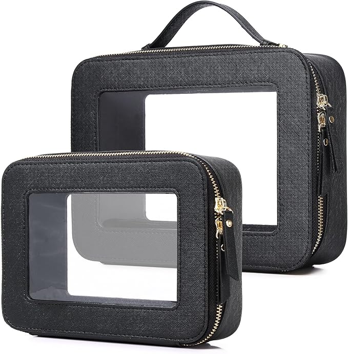 - [Makeup bag set] : Our Clear Makeup Bag Set measures 8.07" * 5.9" * 2.75" + 9.44" *7.28" *3.5" , making it perfect for daily or travel use.