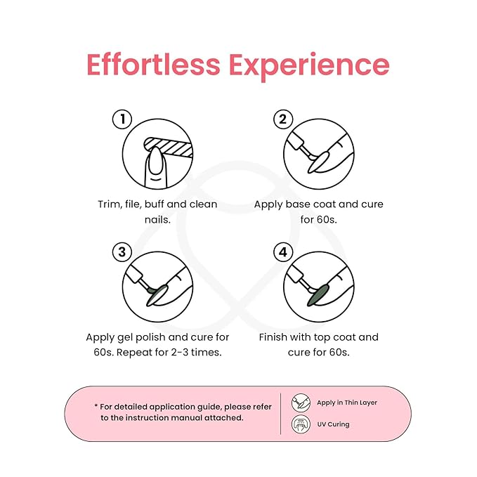 - Speed Curing with LED Nail Lamp: The nail gel polish gift set need to be cured under LED Dryer Lamp. Base and Top coat required. Average for LED Lamp 60-120 secs. Only used for nail and Non-direct contact with the skin. Wash immediately if contact occurs. If you feel unwell, instantly stop using and seek medical attention. Keep the products away from the pregnant and the kids.