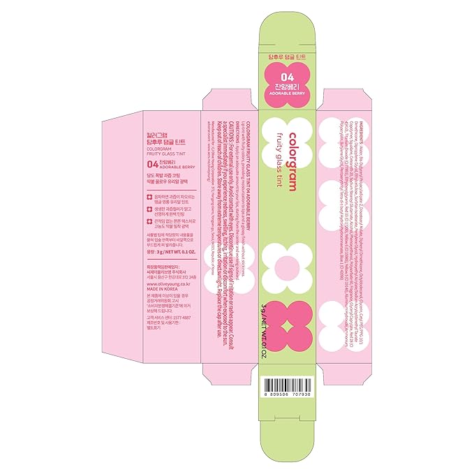 COLORGRAM Fruity Glass Tint 04 Adorable Berry | Korean Long Lasting & Waterproof Lip Stain | Glossy Dewy Lip Gloss, Highly Pigmented Strawberry Pink Shade with Glowing effect 0.11 Oz.