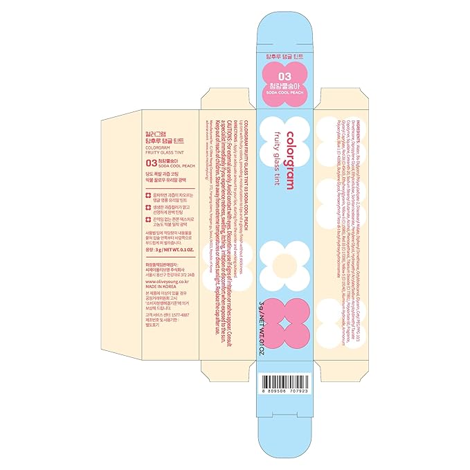 COLORGRAM Fruity Glass Tint 03 Soda Cool Peach | Korean Long Lasting &Waterproof Lip Stain | Glossy Dewy Lip Gloss with Apricot Coral Shade | Buildable, Blendable, Moisturizing | 0.11 Oz