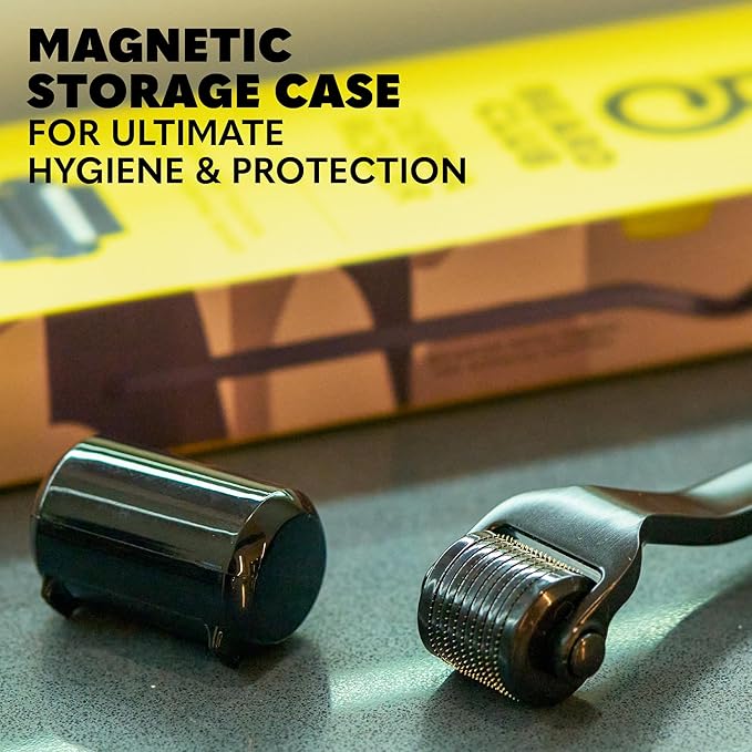 The Beard Club Premium Derma Roller for Face, Body and Scalp - Microneedling Roller for Men and Women with 540 Titanium Microneedles - for Hair & Beard - Weighted Metal Handle - Magnetic Storage Case
