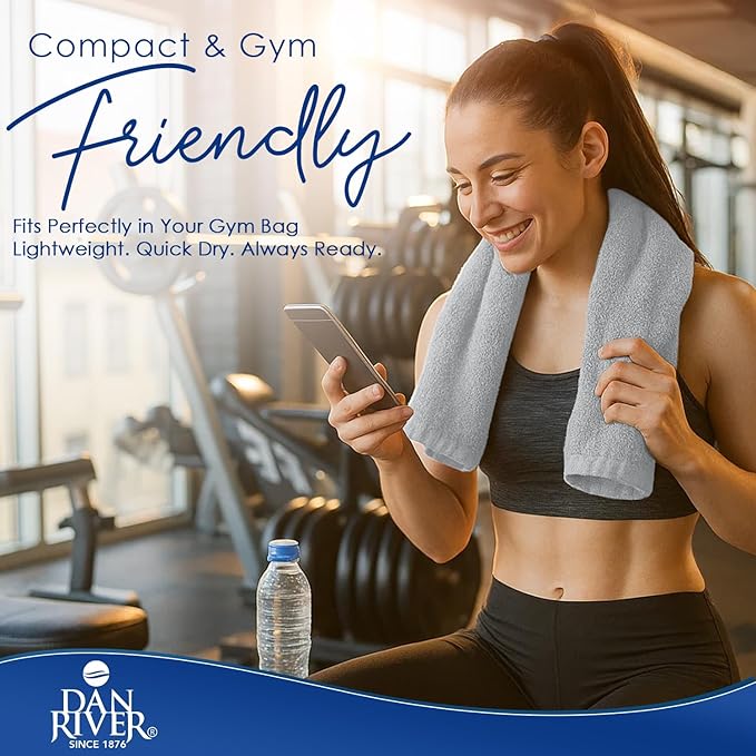 DAN RIVER 6-Pack Premium Hand Towels (16x28 Inches) - 100% Cotton, Ultra Soft, Lightweight, Highly Absorbent Towels for Bathroom, Spa, Gym, Salon, Hotel, and Travel - Silver