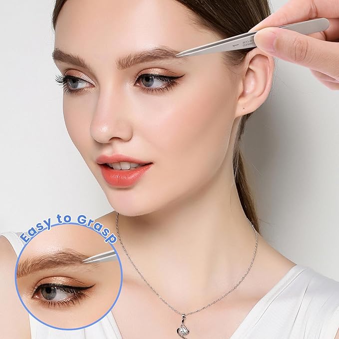 Pointed Tweezers for women Facial hair, Precision Tweezers for Eyebrows, Chin Hair๏ผIngrown Hair, Splinters, Glass Removal๏ผSilver๏ผ