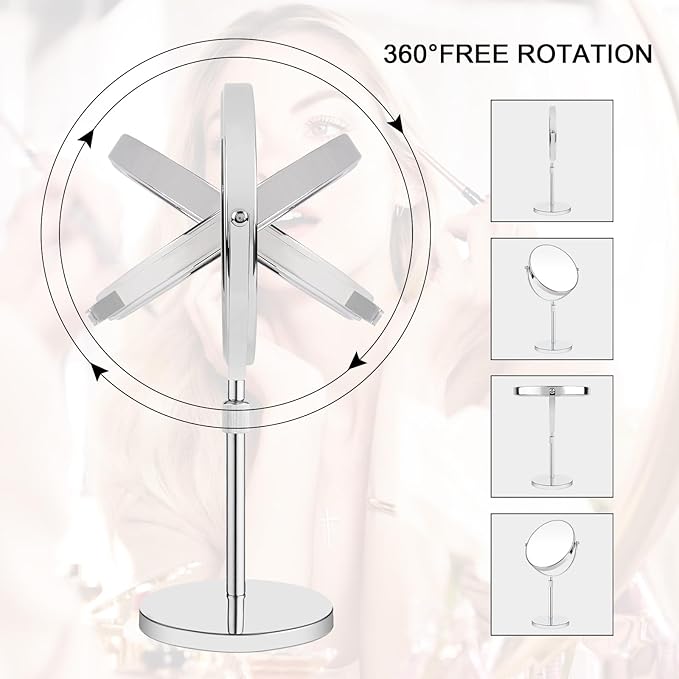 - TALL MAKEUP MIRROR without WOBBLE¦Height Adjustable design. Heard some people complain normal table mirror is too short to use, this make up mirror with stand perfectly solve this problem. Telescoping stand is height adjustable from 15 to 18.93 inches, with 360 degrees swivel and freestanding function, it’s suitable for tables of all sizes. Very convenient for people in different heights. Ideal for family use.