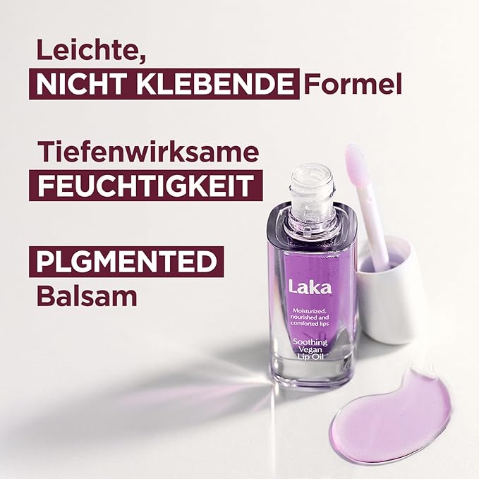 Laka Soothing Vegan Lip Oil, 4.5g/0.15oz., Nourishing Formula with Jojoba Seed Oil for Healthy Lips, Cracked and Chapped Lips, Vegan, K-Beauty (#Calming Purple)