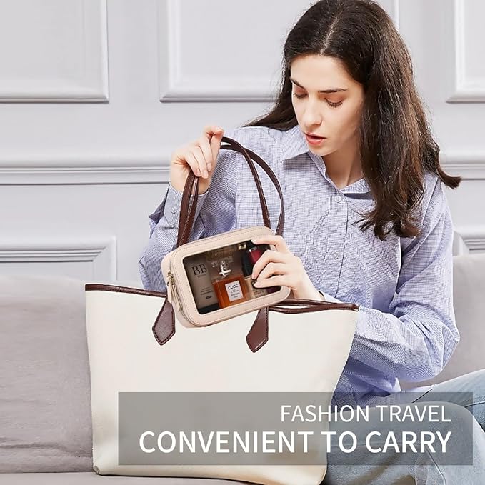 Pinkmik Clear Makeup Bag Transparent Travel Case for Cosmetics and Toiletries Women's Clear Car Bag with Zipper (Beige, Small)