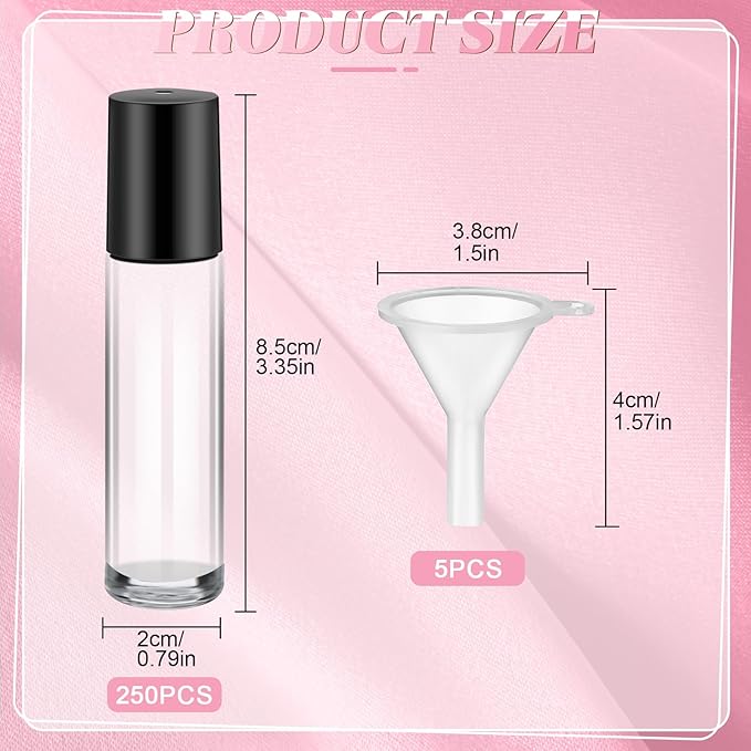 Sumind Essential Oil Roller Bottles - 250 Pcs, 10 ml Glass, Stainless Steel Roller Balls, Leakproof, Funnel Included(Clear)
