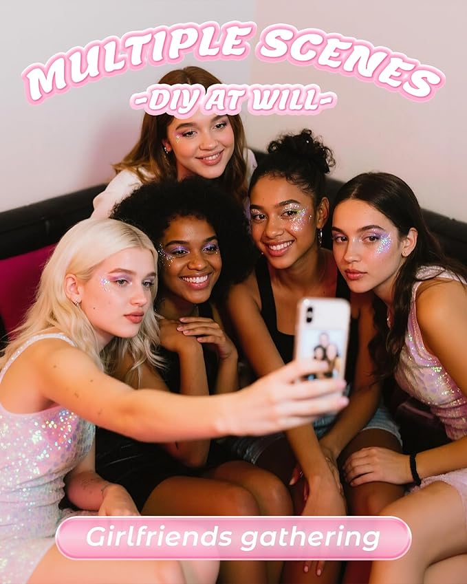 - EASY APPLICATION, NO MESS: No glue needed! This self-adhesive Clear White Body Glitter gel applies smoothly with fingertips or a brush—so you can create stunning looks in seconds. Ideal for last-minute glitter transformations on your face, body, hair, or nails. Layer it for intense dimension or wear it lightly for a subtle gleam