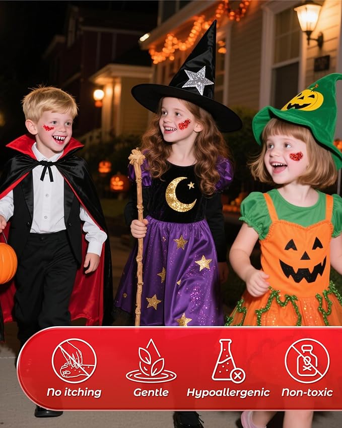 - VEGAN, SAFE & GENTLE: Hypoallergenic, and cruelty-free ingredients, our Red Face Glitter Gel is safe for all ages—even kids! It glides on comfortably without irritating skin and washes off easily with soap and water. Party with peace of mind