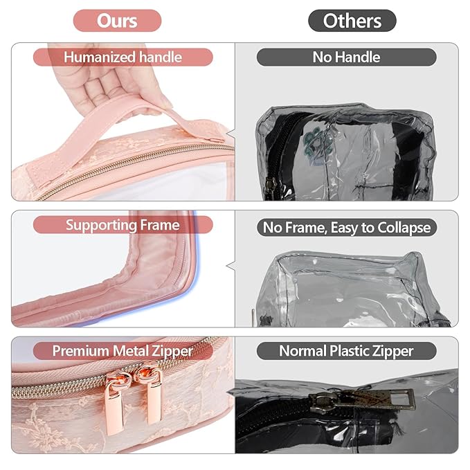 - 2024 Upgrade Style, Lace Fabric: The binding is a fashionable and exquisite Lace fabric, which is ahead of most styles on the market. Several pack clear travel bags perfectly store the travel bottles for toiletries, travel size toiletries kit, and other travel essentials