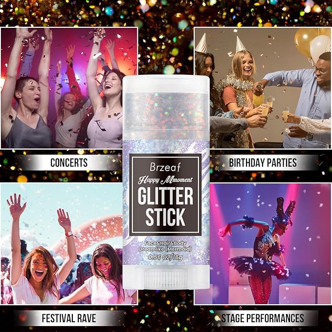 - 【Bright and Lasting Hold】Our Mermaid body glitter stick is makeup product designed specifically for use as accessories for events such as music festivals, concerts, parties or holiday raves. Our mermaid face glitter stick will sparkle and shine, the color and shine of the sequins change with visual changes, releasing a dazzling light, allowing you to party and create your own sparkling look.