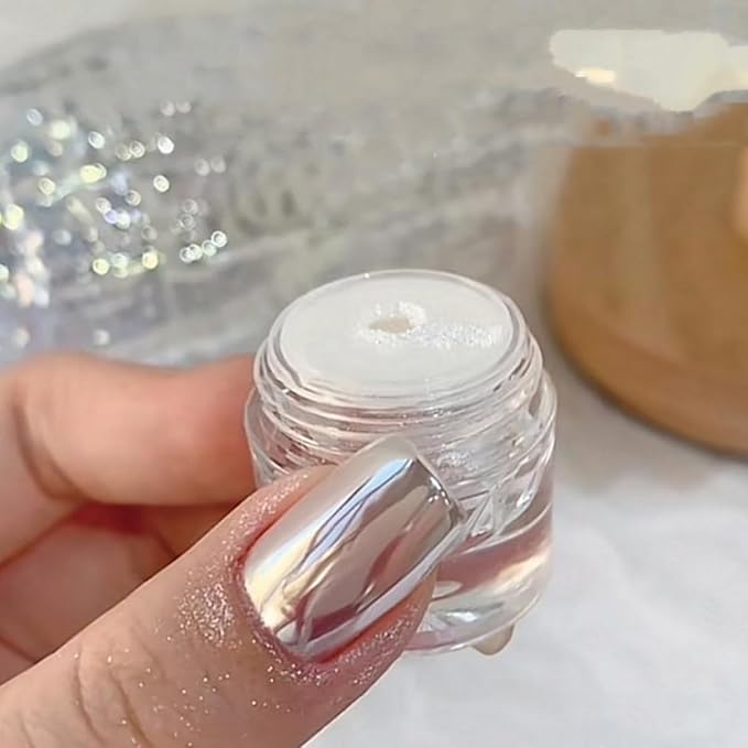 Super Glossy Mirror Effect White Pearl Chrome Nail Powder, Magic White Moonlight Effect Iridescent Pigment Powder for Nails