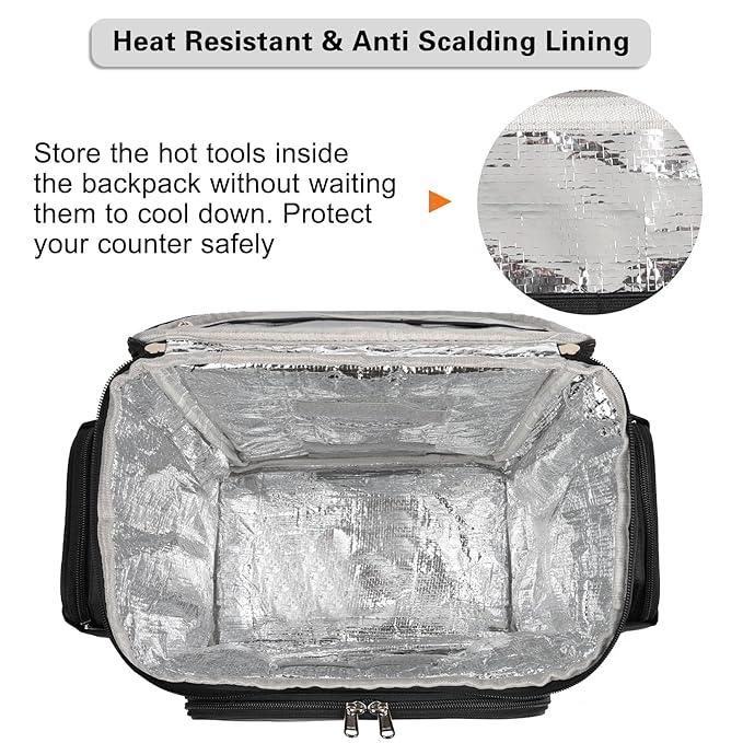 - ☑ Heat Resistant Lining --- Perfect for hot tools. The lining is made of heat insulation & anti-scalding aluminum material. Easy to hold and store a variety hot tools like hair dryer, hair straightener. Protect your counter safely. You can store the hot tools inside the case immediately after using them without waiting for them to cool down. Hairstylist Must Haves!