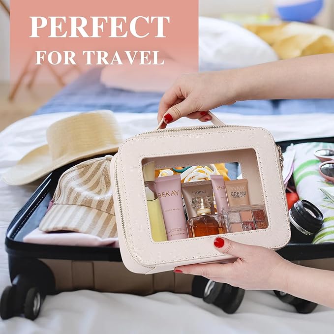 - [ Sturdy Makeup Case ] : Made with the same durable faux leather material inside and outside, along with a metal zipper, ensuring this clear cosmetic case retains its shape and effectively protects your belongings. It is also easy to clean with a damp cloth or wet tissue.
