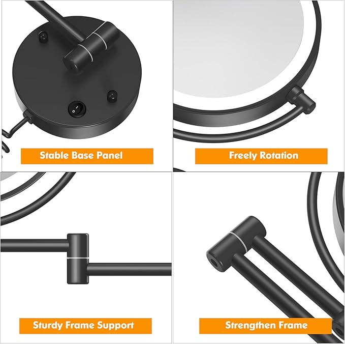 - ๐๐๐ยฐ ๐๐ฐ๐ข๐ฏ๐๐ฅ ๐๐ฑ๐ญ๐๐ง๐๐๐๐ฅ๐ ๐๐ข๐ซ๐ซ๐จ๐ซ๐ฆพ The magnifying mirror with light rotates 360 degrees, and the extended arm can extend up to 18.5 inches out to choose the perfect angle at will. Ideal wall mount mirror with extension arm for makeup application, shaving and wearing contact lenses, etc. Retracts when not in use will free up precious space and add a touch of style to your daily rituals.