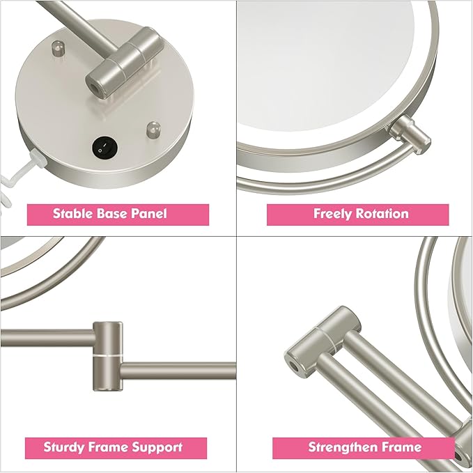 - ๐๐๐ยฐ ๐๐ฐ๐ข๐ฏ๐๐ฅ ๐๐ฑ๐ญ๐๐ง๐๐๐๐ฅ๐ ๐๐ข๐ซ๐ซ๐จ๐ซ๐ฆพ The magnifying mirror with light rotates 360 degrees, and the extended arm can extend up to 18.5 inches out to choose the perfect angle at will. Ideal wall mount mirror with extension arm for makeup application, shaving and wearing contact lenses, etc. Retracts when not in use will free up precious space and add a touch of style to your daily rituals.