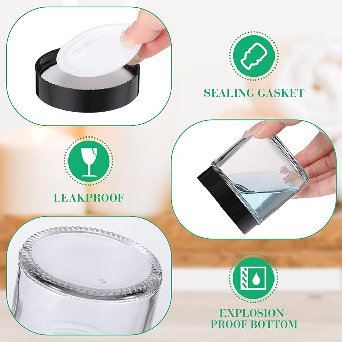- Leak Proof and Reusable: the 4oz glass jars with lids have airtight and sturdy structures, which can provide additional protection, and ensure the contents are fresh; This product can prevent leakage by tightening the lid after covering the inner lid, both of which are indispensable, preventing the contents from leaking without worrying about getting dirty