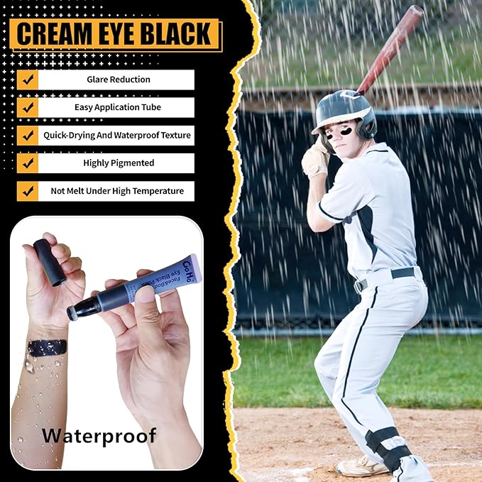 - 【Safe Ingredients & Glare Reduction Eye Black】Healthy ingredients,does not irritate eyes. Get ready for your next game with our easy-to-use eye black stick that provides ultimate glare reduction on the field.Protect your eyes from harsh sunlight and stadium lights with our eye black stick.It is oily waterproof texture,will not run when caught in the rain, but very easy to wipe off when you don't need it,make-up remover wipes take it off easily.