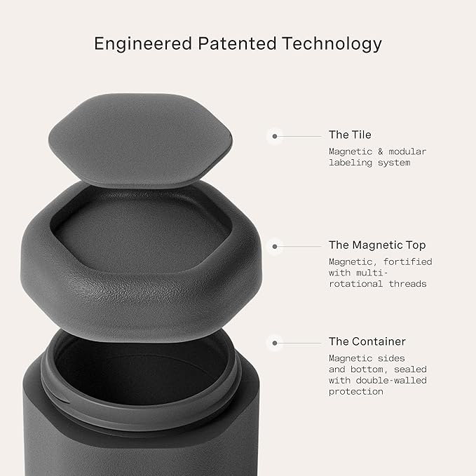- PATENTED MAGNETIC DESIGN - Designed for seamless storage, our travel capsules feature a magnetic design that connects each container vertically or horizontally. They include magnetic labels that seamlessly swap between The Flex Small, The Flex Medium, and The Flex Large Capsules.