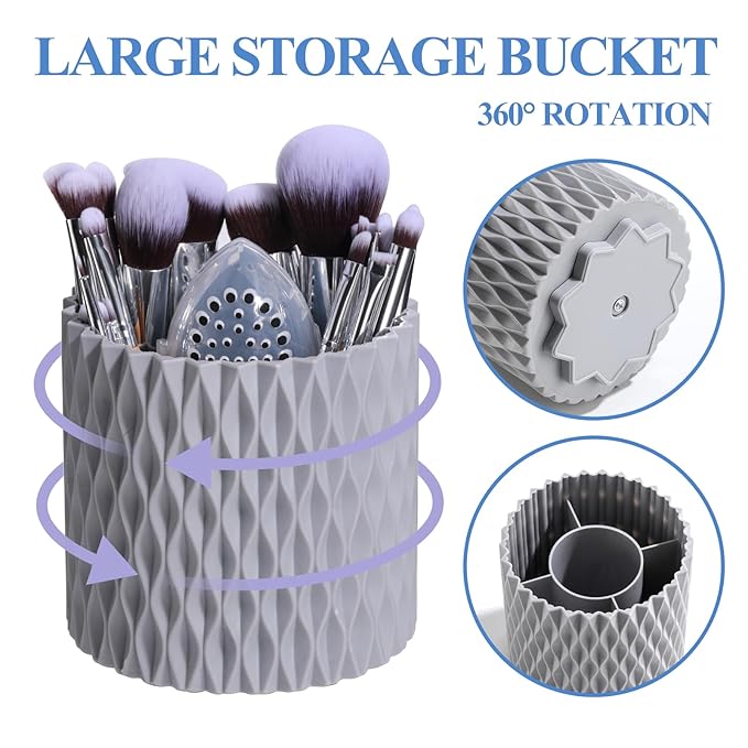 - 🎀The set includes a rotating makeup brush holder which can be placed on the dressing table for easy access to your brushes.
