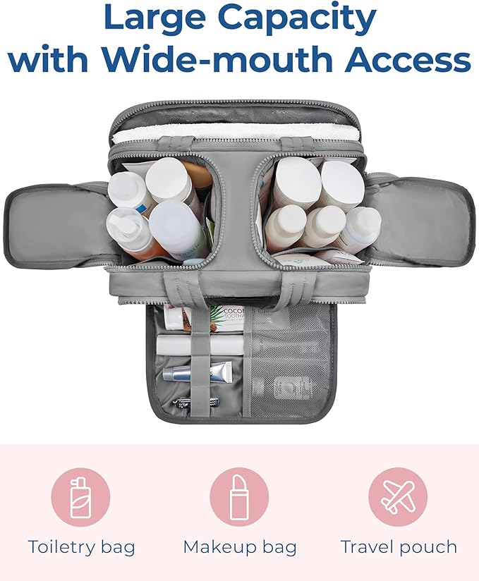 - Excellent Functionality: Unique design allows you to get a travel bag for toiletries, shaving kit or makeup bag, all in one. It's a great choice for business trips, travel, gym, camping, home use, and more