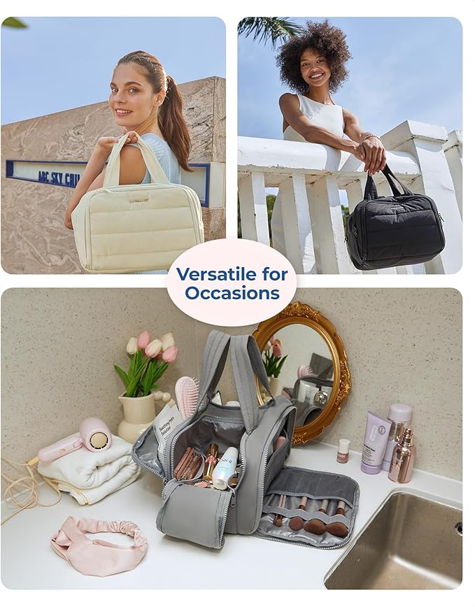 - Ultra Light and Soft Materials: Made of soft and luxurious Taslan fabric. This puffer toiletry bag feels like cotton candy, giving people a relaxed and comfortable atmosphere. Also a reliable, functional, and fashionable makeup bag. Efinitely an ideal Christmas gift for yourself, your family, and your friend