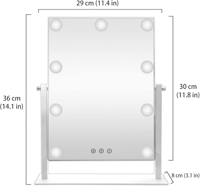 - Three different light colors: 9 big bulbs lights providing a large and bright viewing, adjustable brightness and 3 lights color modes(day light(5500K), cold light(7800K), warm light(4000K)), helping you to finish a flawless professional makeup suitable for any occasions