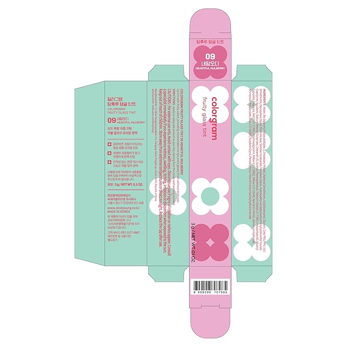 COLORGRAM Fruity Glass Tint 09 Heartful Mulberry | Korean Long Lasting & Waterproof Lip Stain | Highly Pigmented Daily Mauve Plum Shade with Glowing effect, Buildable & Blendable 0.11 Oz.