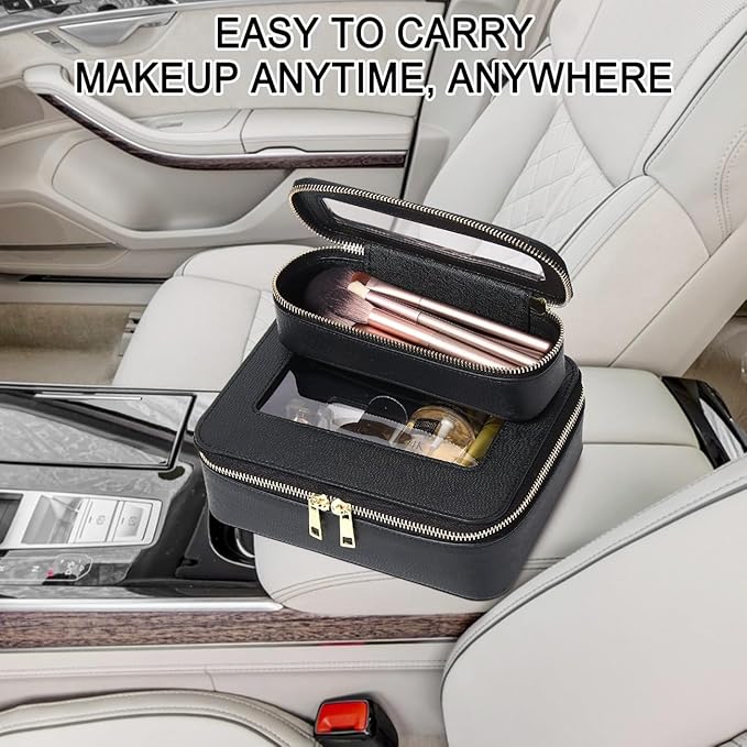 - [Premium Waterproof Material ] : This cosmetic case made from durable and soft Faux Leather material, Warterproof inside and outside also easy to clean with a damp cloth or wet tissue.