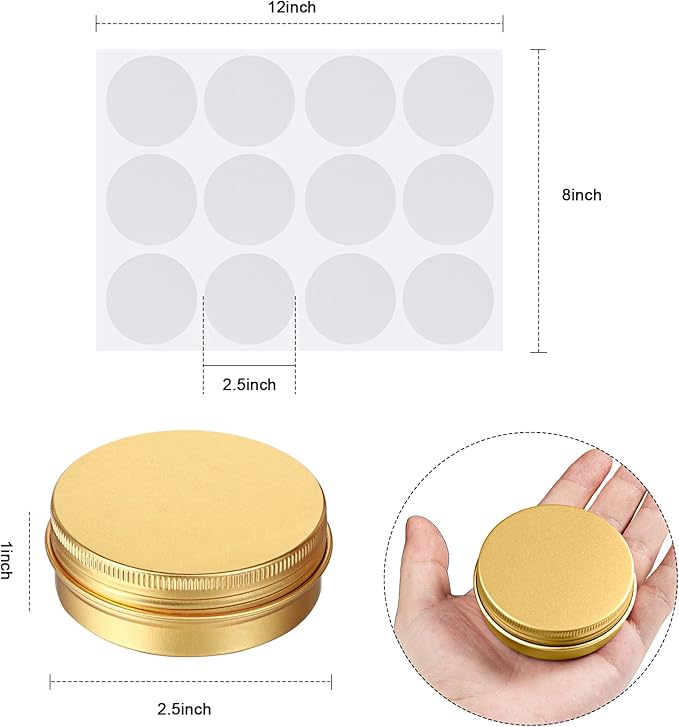 - Generous Supply: package includes a generous quantity of 120 metal round tins along with 25 sheets of stickers (12 pieces on each sheet, a total of 300 pieces of stickers) for your convenience, enough to meet your daily needs; With a diameter of 2.5 inches and a capacity of 2 oz/ 60 ml, these cans are compact yet capacious, ideal for storing salve, powders, candies, gifts, and more