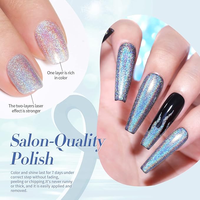 About This 1 Bottle Sliver Holographic nail polish.This stunning reflective glitter silver is beautiful and glossy on all skin tones,turning... Read more