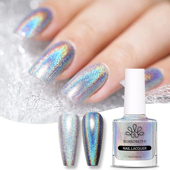 Born Pretty Sequin Single Silver Nail Polish Holographic Sparkle Nail Polish Quick Dry Nail Art Varnish 10ML