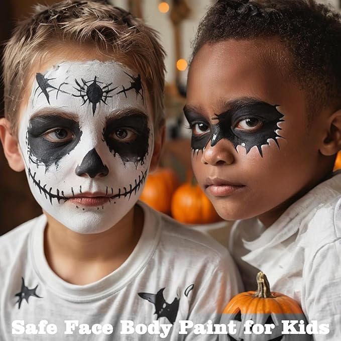 - Safe For Kids And Adults:MEICOLY white black light grey body paint is made with safe,non-toxic,hypoallergenic ingredients,no itching on the skin,safe face body paint for kids and adults.All material is vegan and cruelty-free,not tested on animals