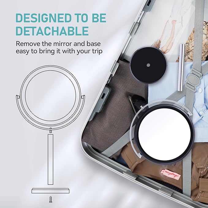 - 360°Mirror for Dressing Table: The 360° swivel joint allows easy toggling between 1x and 20x magnification for great viewing at any angle, the dual sided magnifying makeup mirror provides a clear reflection from every angle