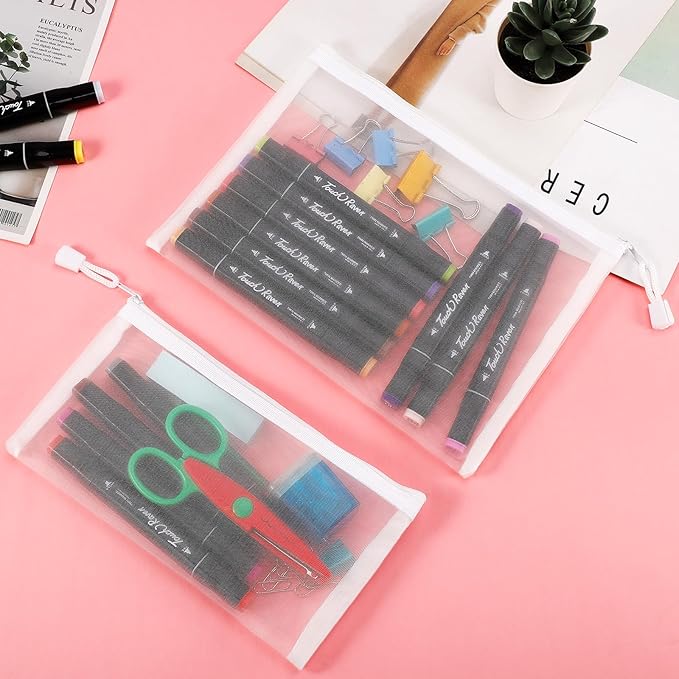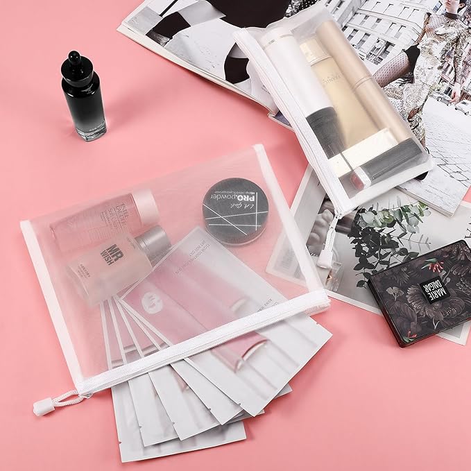 12 Pieces Zipper Nylon Mesh Pouch, Mesh Cosmetic Bags Makeup Bags Pencil Case, Multipurpose Travel Bags for Cosmetic School Office Supplies and Travel Accessories (White, A5)