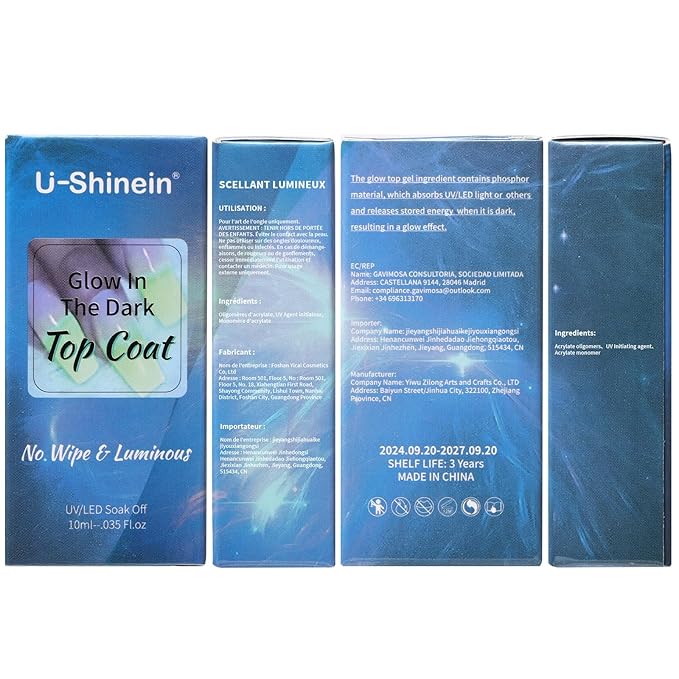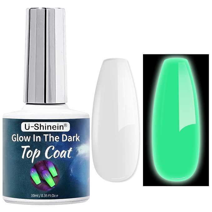 U-Shinein Glow In The Dark Gel, Glow Transparent Nail Top Coat, Long-lasting Luminous Nail Gel Top Coat for Nail Art, UV LED Needed Perfect with Any Colors Salon Pro DIY Home