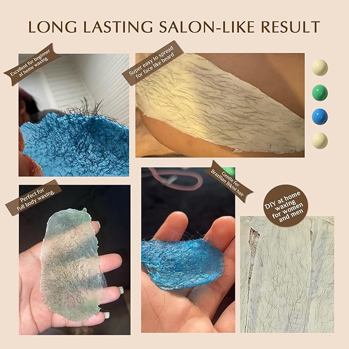 - π§ππ₯πππ§ππ πͺππ« πππππ¦ ππ’π₯ ππππ₯ π₯ππ π’π©ππ: This waxing kit includes cream wax beads ideal for men's facial hair, beard, and eyebrow, chamomile wax beads for the sensitive bikini area, and aloe vera for full-body use. Tailored for various skin types and hair removal areas, these wax beads provide a gentle yet efficient waxing experience. It's suitable for all hair types, making this selection perfect for a body wax kit for hair removal and leg waxing kit for women.