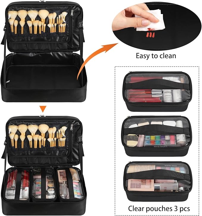 Extra Large Makeup Case, Professional Makeup Train Case for Makeup Artist Traveling Organizer, Double Layer XL Cosmetic Travel Case for Cosmetology with 3 Detachable compartments and 3 Makeup Bags