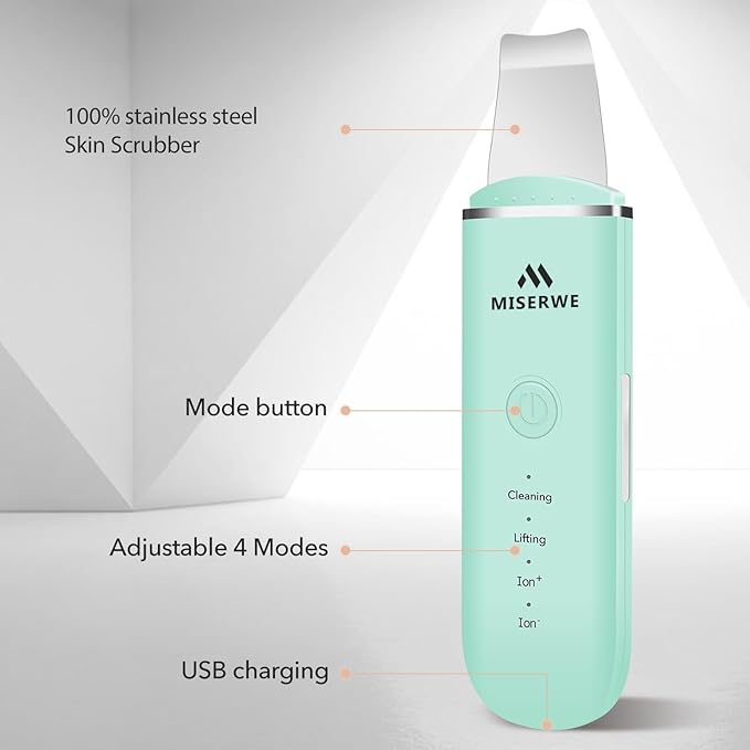 Skin Scrubber Face Skin Spatula Facial Scrubber Spatula Pore Cleaner with 4 Modes (Green)