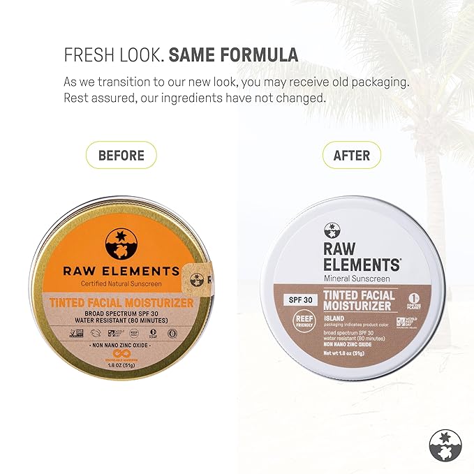 Raw Element Ultra-Moisturizing Tinted Face Cream, Non Toxic Mineral Face Sunscreen, Daily Tinted Moisturizer, Non-Nano Zinc Oxide, Reef Friendly, All Ages, SPF 30, 1.8 oz, Island, Pack of 1
