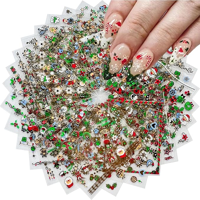 - Christmas Nail Decals: You will get 24 styles Gold nail stickers in one set of different snowmen Santa Claus Christmas tree and elk nail stickers, satisfy all your love for beautiful nails, a variety of elements for you to choose from to DIY your own nail art designs.