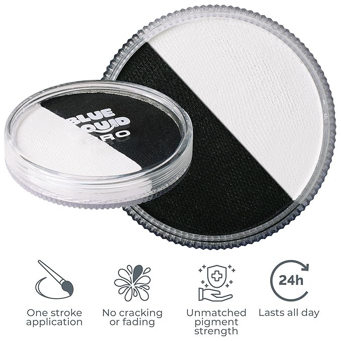 - π§βπ¨ π¦π£πππ§ πππππ & πͺπππ§π ππππ ππ‘π ππ’ππ¬ π£πππ‘π§: Blue Squid Split Black & White face paint makeup is the go-to choice for professional makeup artists and performers, thanks to its vibrant colors, smooth application, and long-lasting wear. Perfect for creating intricate designs and bold statements, it's the trusted tool for professional face paint experts in the industry. The Net weight is 1oz.