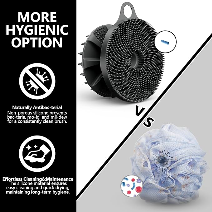 - BODY SHOWER SCRUBBER SIDE: Say goodbye to traditional bath sponges and loofahs. The shower side of the BEAUTAIL silicone brush boasts a gentle yet effective silicone bristle surface that offers a deep, invigorating cleanse. It's perfect for exfoliating, lathering up your favorite body wash, and ensuring your skin feels refreshed and rejuvenated.