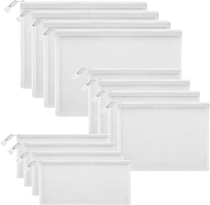 12 Pieces Zipper Nylon Mesh Pouch, Mesh Cosmetic Bags Makeup Bags Pencil Case, Multipurpose Travel Bags for Cosmetic School Office Supplies and Travel Accessories (White, Assorted Sizes)