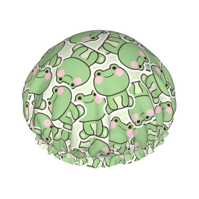 Cute Frogs Shower Cap For Women Reusable Waterproof Double Layers Bath Cap Hair Protection Elastic Ladies Spa Salon Shower Hat