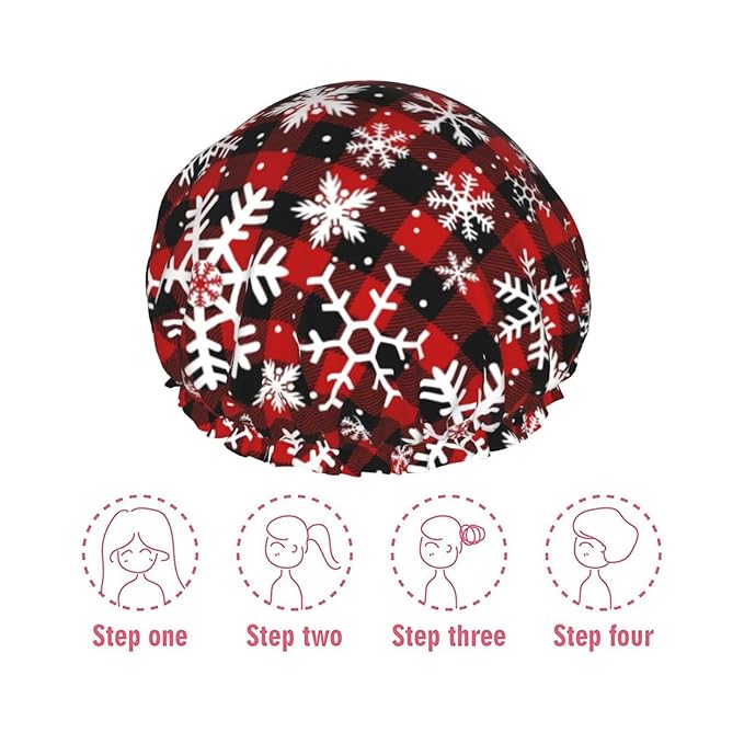 Christmas Snowflakes Shower Cap For Women Reusable Waterproof Double Layers Bath Cap Hair Protection Elastic Ladies Spa Salon Shower Hat