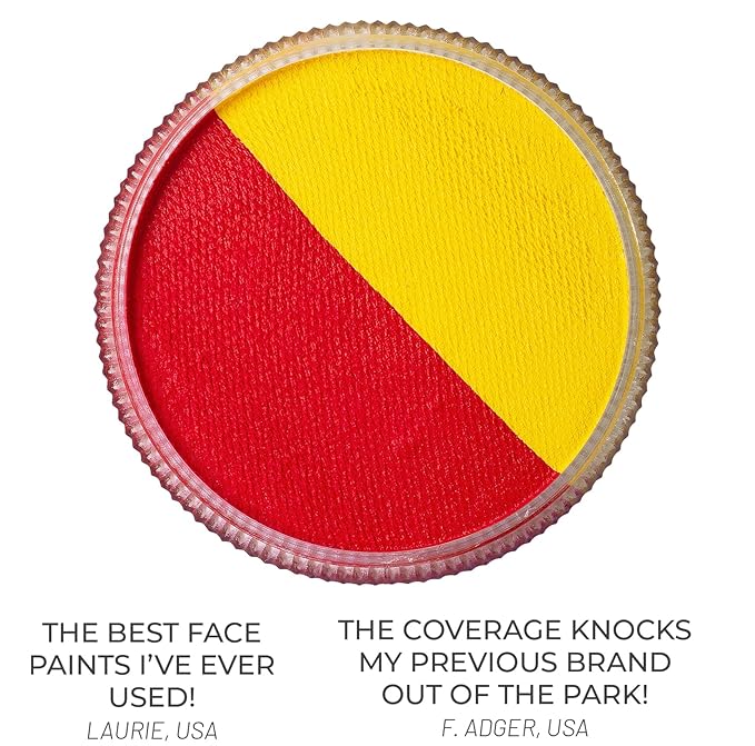 - π§βπ¨ π¦π£πππ§ π₯ππ & π¬ππππ’πͺ ππππ ππ‘π ππ’ππ¬ π£πππ‘π§: Blue Squid Split Red & Yellow face paint makeup is the go-to choice for professional makeup artists and performers, thanks to its vibrant colors, smooth application, and long-lasting wear. Perfect for creating intricate designs and bold statements, it's the trusted tool for professional face paint experts in the industry. The Net weight is 1oz.