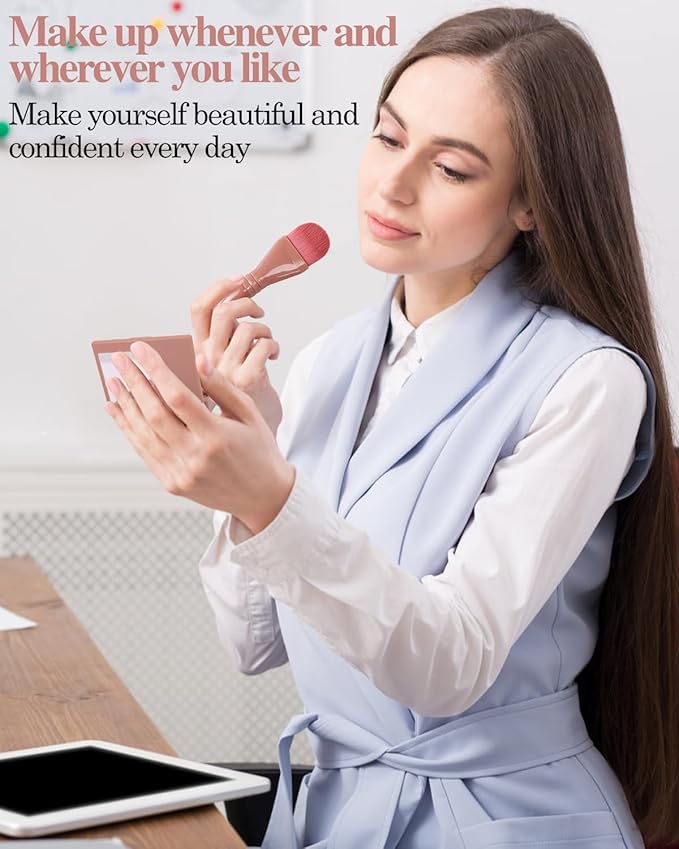 - Small Makeup Brush Set: Contains five brushes, including eyeshadow brush, powder brush, shadow brush, lip brush and blush brush. Allows you to apply flawless and professional makeup every time. And it comes with a handy mirror that is built into the compact case, making it easy to use on the go