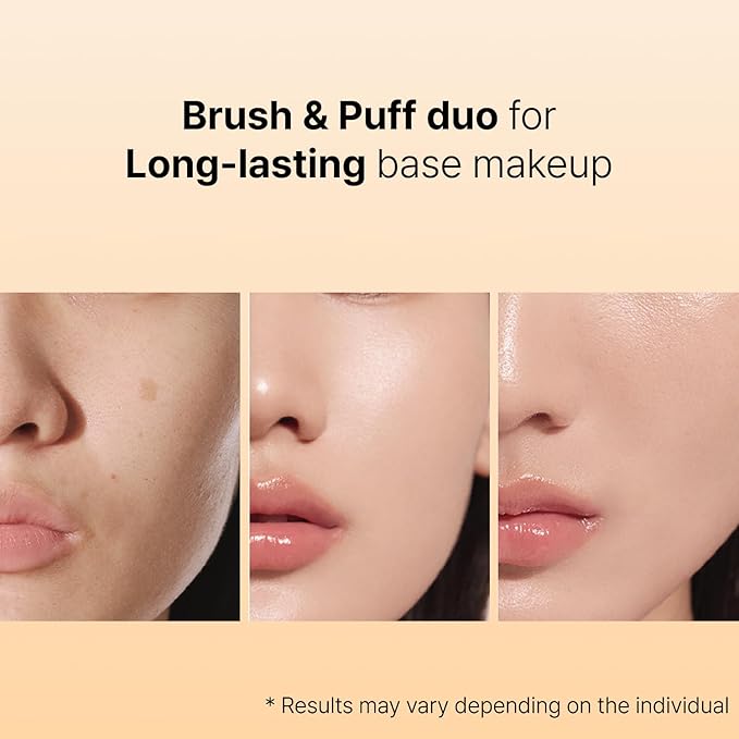 THE TOOL LAB All Day Fitting Duo (Glow type) - Premium Base Makeup Set for Liquid Cream Powder Foundation, Buffing Blending Face Brush, Sponge, Portable Case - 1.1" Flat Top Brush