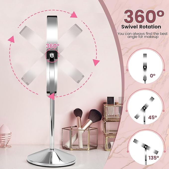 - 【360° Rotatable】 The makeup mirror with light can be rotated 360 degrees. You can adjust the mirror to any angle for optimal viewing, the vanity mirror provides clear reflections from any angle. Makes makeup easier and more convenient